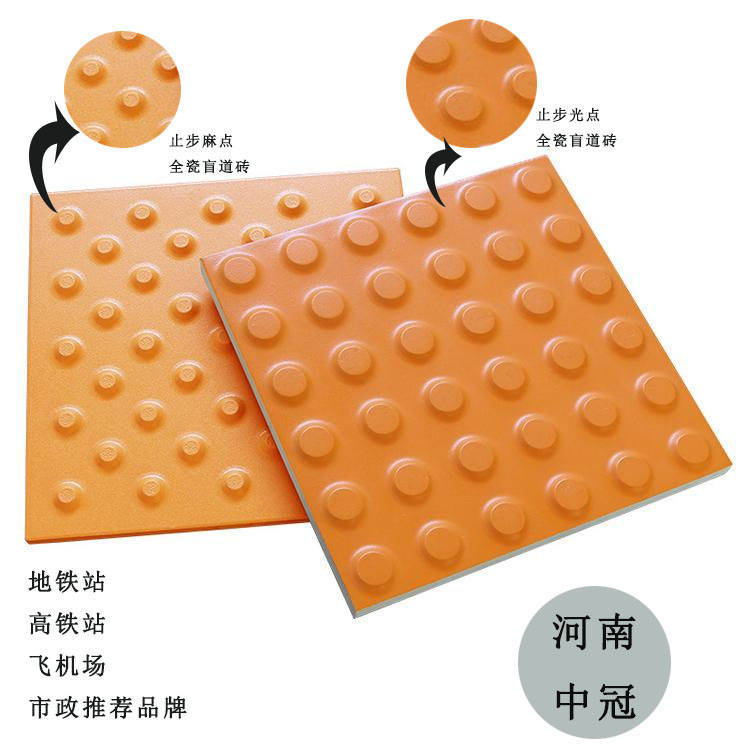 我国的**施修造势力已****播,各京城赞叹于我国的进展速率,现现在不止是一、二线大都市修造有高铁站台,正在少少幼县城同样设有高铁站台。而站台上显而易见的一排黄色地砖被称之为—盲道,铺设站台盲道所用的地砖为——全瓷盲道砖。尺寸有300*300、400*400也有其他的出格尺寸,该种全瓷盲道砖拥有耐磨度高、抗低温、抗膺惩、应用寿命长等特质。合用于百般大庭广多,如百般人行道口、都市广场入口、公交候车站、修设入口、地铁、高铁、公园等百般市政工程。